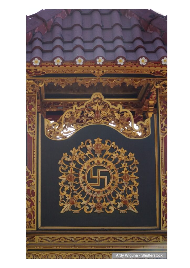 ,Photo description: Balinese temple ornament, with the name swastika.