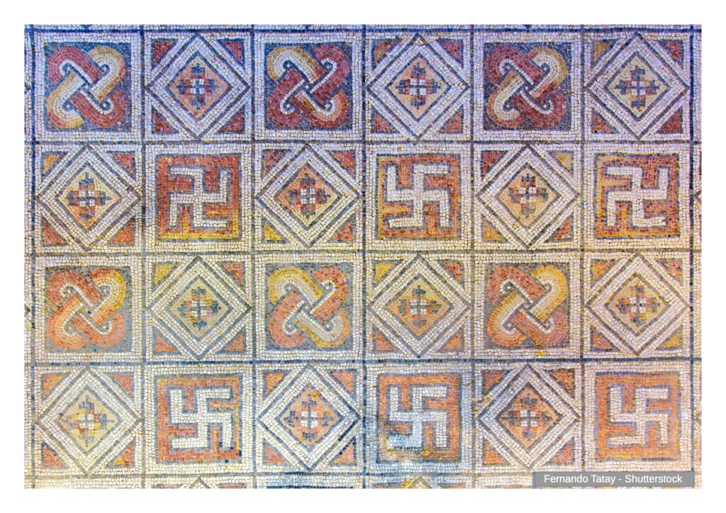 , Swastikas in 4th-century geometric patterns at La Olmeda Villa.