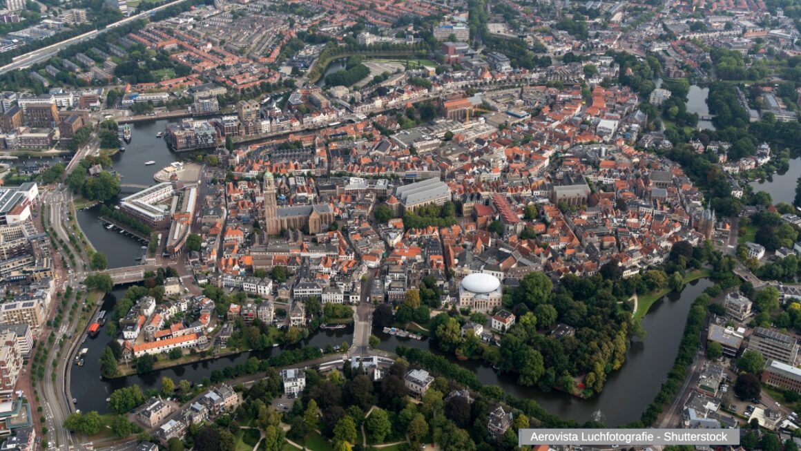 ,Photo description: Aerial view of the dutch historic fortified city Zwolle, in the province of Overijssel, Holland. The town has an old star fortification.