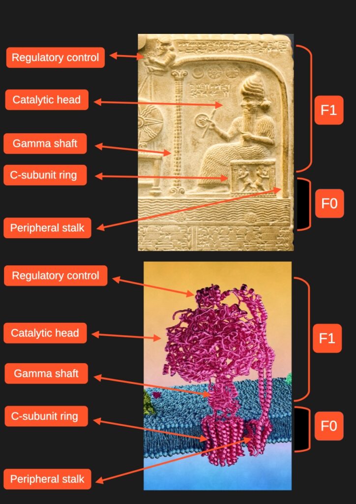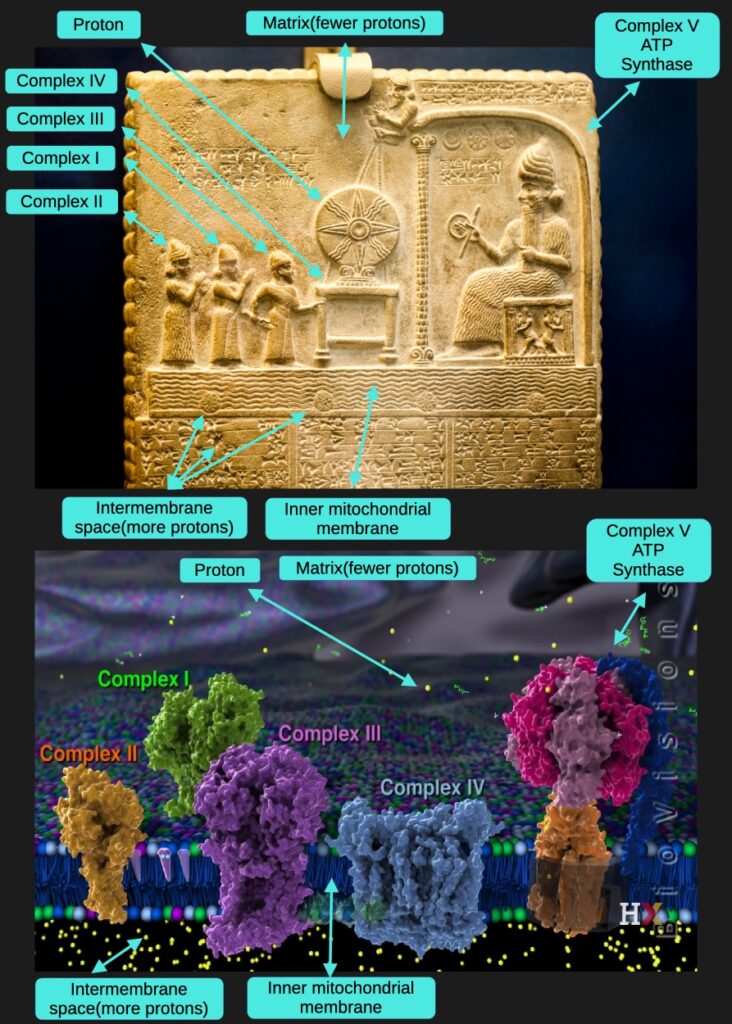 On the Shamash tablet, you see the upper part of the scene—the space above everything, above the complexes, above ATP Synthase.