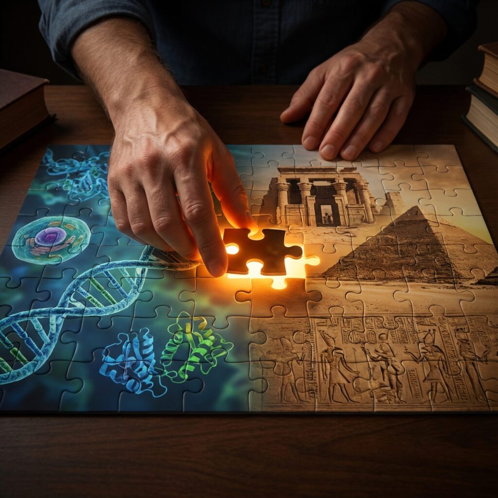 - Research Focus: Ancient architectural encoding of molecular biology
