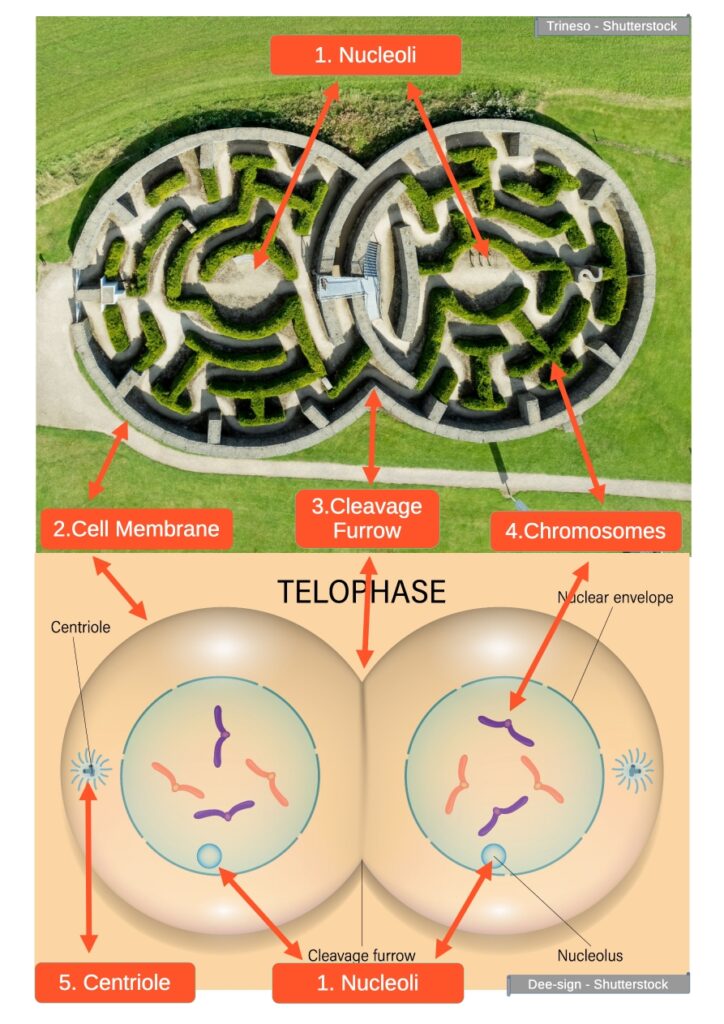 - 4. The Hedge Walls as Chromosomes – The hedge pathways arrange themselves in patterns identical to sister chromatids in the final stage of division. Every twist and turn corresponds to the precise arrangement of DNA that has just completed its journey to the cell’s poles.