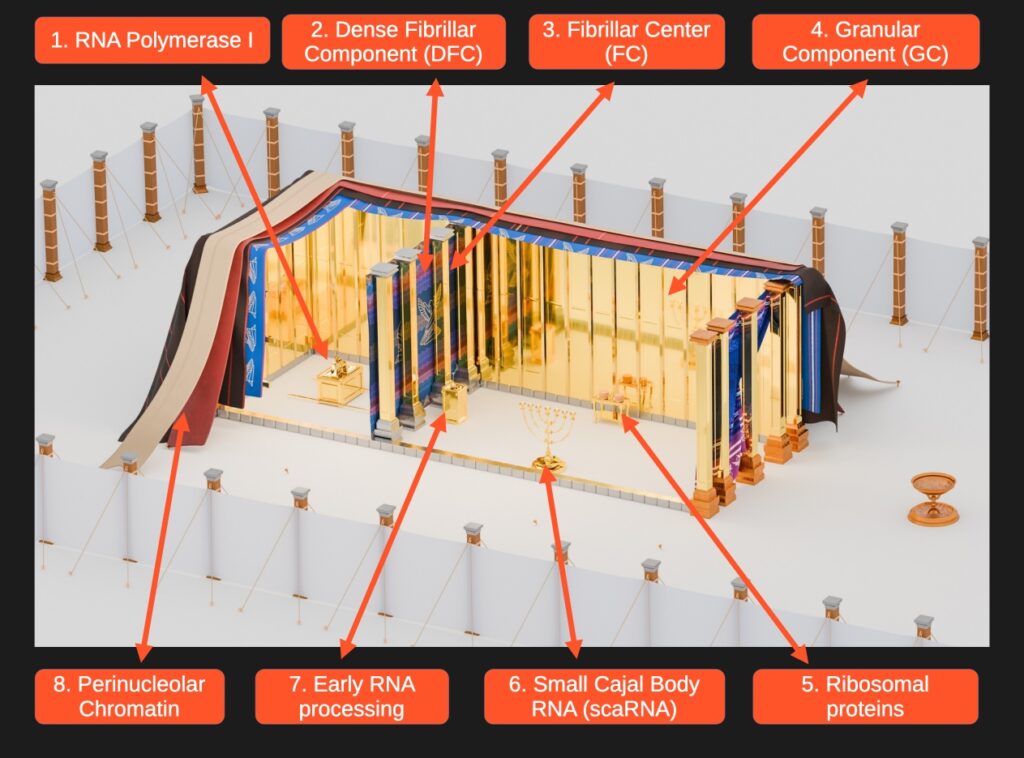 The Tabernacle isn’t describing a building in the desert. It’s encoding the complete architecture of a eukaryotic cell—from the outer cytoplasm to the innermost transcription machinery in the nucleolus.
